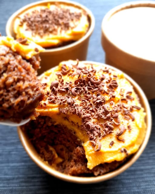 Postre cremoso para comer con cuchara, que combina el sabor intenso del chocolate con el dulce y exótico de la lúcuma, fruta andina.